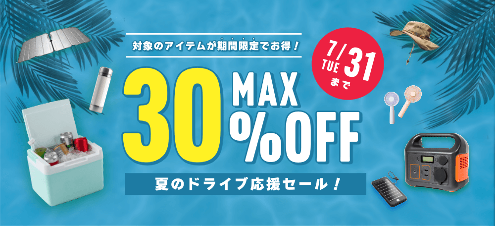 - 最も重要な割引率「30%OFF」をバナー中央に大きく配置し、視覚的なインパクトを最大化。